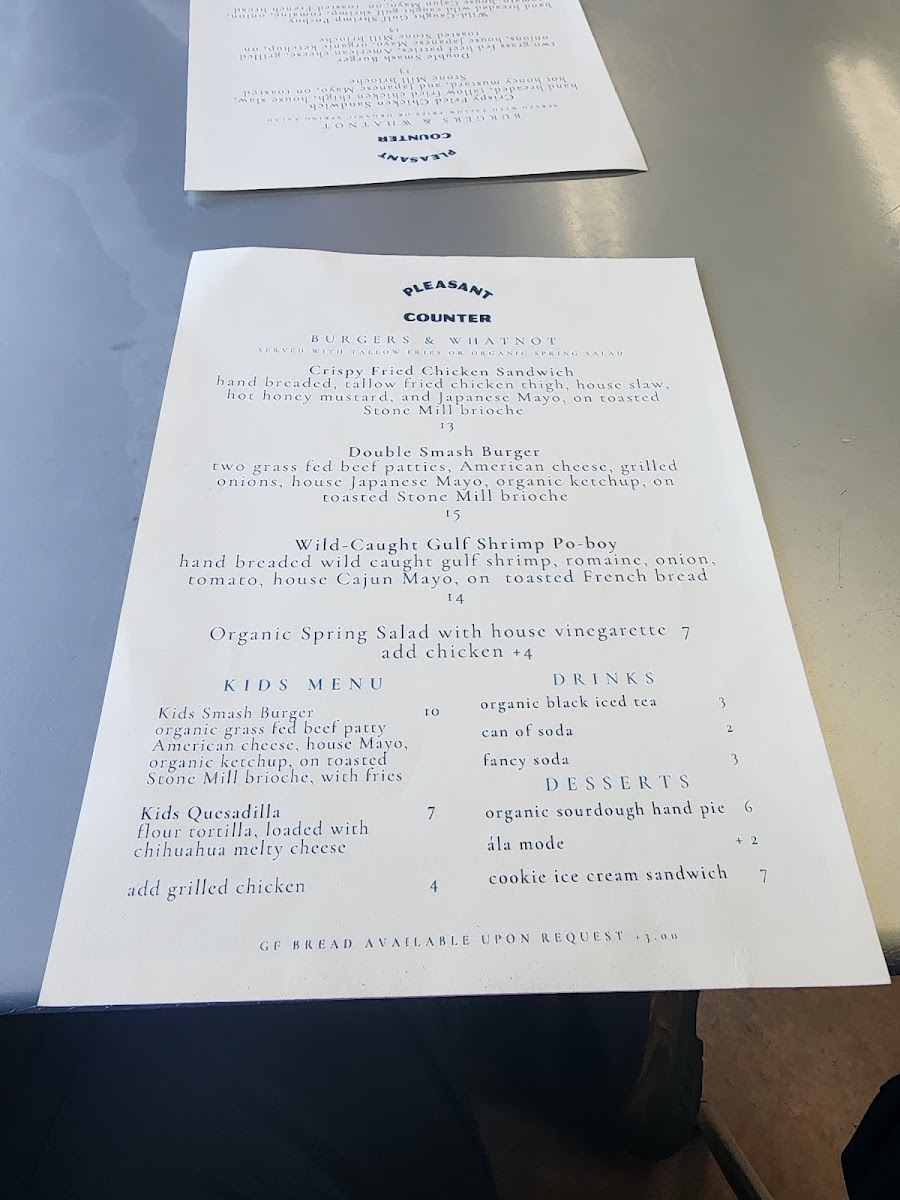 If you're in the mood for something sweet, make sure to try the Organic Sourdough Fried Pie, a unique and flavorful dessert that rounds off the meal on a high note. Overall, Pleasant Counter's menu combines comfort food with a touch of sophistication, ensuring there's something for everyone to enjoy, whether you're in the mood for a hearty burger or a lighter, healthier option.